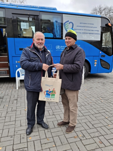 Наші фахівці розповідали вінничанам про симптоми та профілактику цукрового діабету, інших неінфекційних та інфекційних захворювань, наголошували на важливості регулярних скринінгових досліджень для запобігання онкопатологій, розповсюджували друковані інформаційні матеріали. Водночас у мобільній лабораторії ОЦКПХ колеги з Вінницького обласного клінічного високоспеціалізованого ендокринологічного центру визначали усім охочим рівень цукру в крові та надавали фахову консультацію, а наші медики проводили тестування на гепатит.