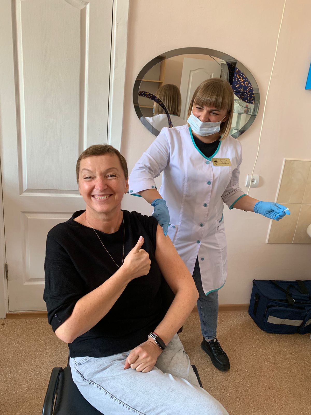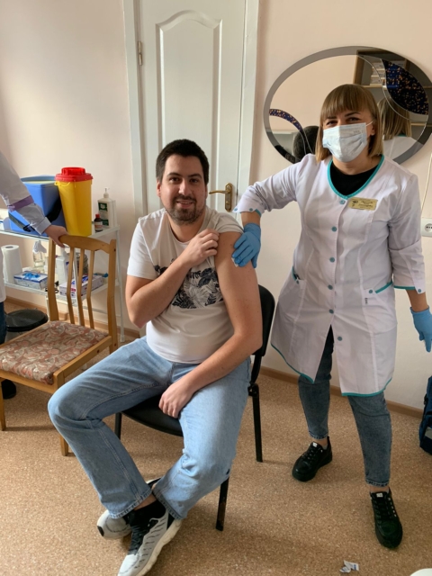 Разом із колективом ОЦКПХ щеплення отримала група журналістів вінницьких ЗМІ. Після вакцинації журналісти поспілкувалися з генеральним директором ОЦКПХ.