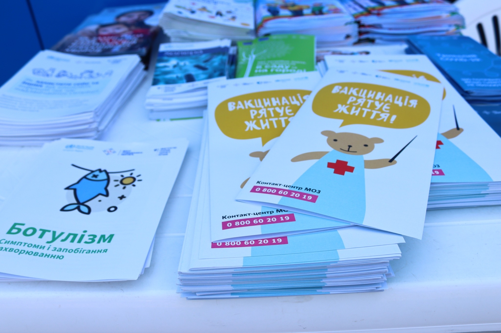 Виїзні санітарно-просвітницькі заходи з підвищення рівня обізнаності жителів територіальних громад щодо профілактики інфекційних і неінфекційних хвороб відбуваються за сприяння ВООЗ, ЮНІСЕФ, МОЗ, ЦГЗ МОЗ в рамках проєкту «Розбудова стійкої системи громадського здоров’я».