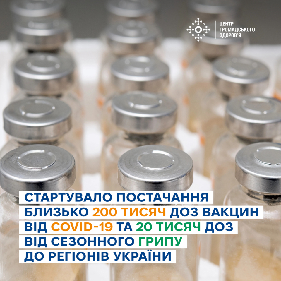 Центр громадського здоров’я МОЗ України (ЦГЗ) розпочав постачання в регіони вакцин від COVID-19 та грипу, отриманих як гуманітарна допомога від міжнародних організацій.