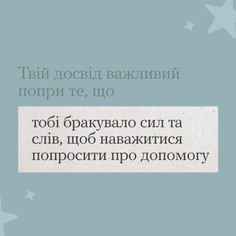 Так, часом здається, що вже пізно просити про допомогу, бо «треба було раніше», але це не так. Просити про підтримку — це крок до зцілення. Поговорити з кимось, хто вислухає та зрозуміє, або навіть просто озвучити свої почуття — це спосіб дати старим ранам загоїтися.