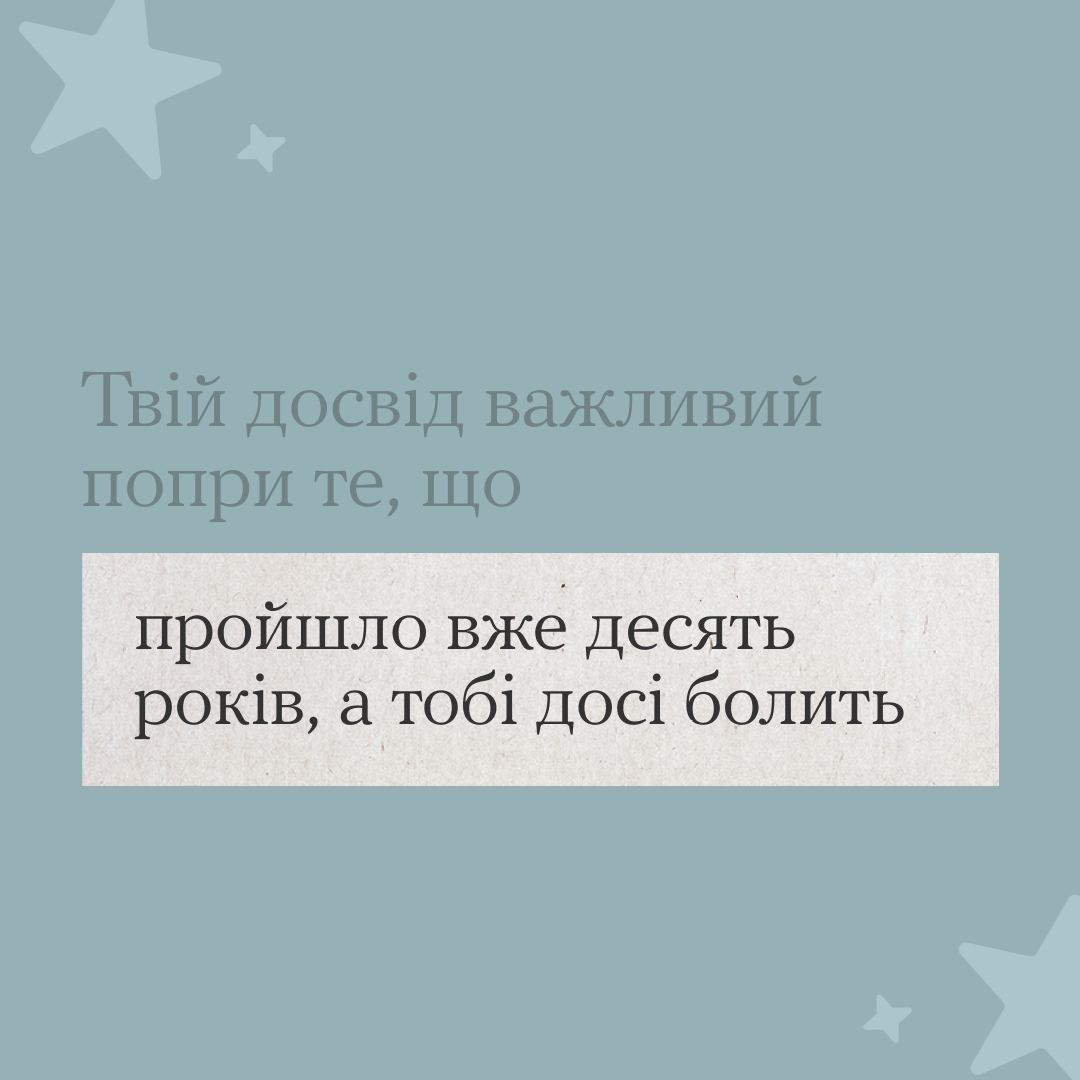 Навіть коли біль зʼявляється через роки — це все ще твій досвід. Важливий і вартий уваги. Незалежно від того, чи сприймають це інші.
