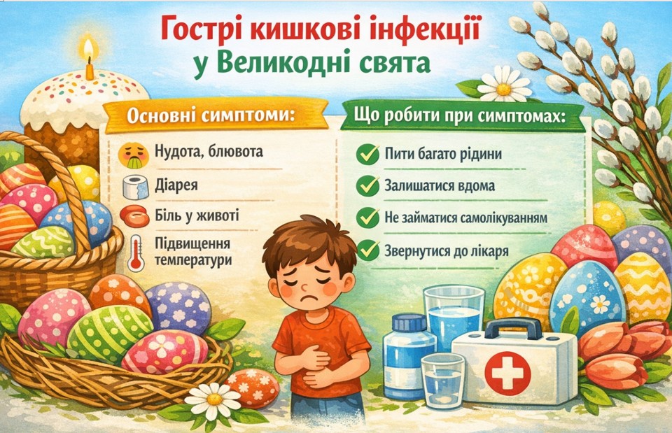 Великдень – це час святкового столу та домашніх страв, але саме у цей період зростає ризик виникнення гострих кишкових інфекцій.