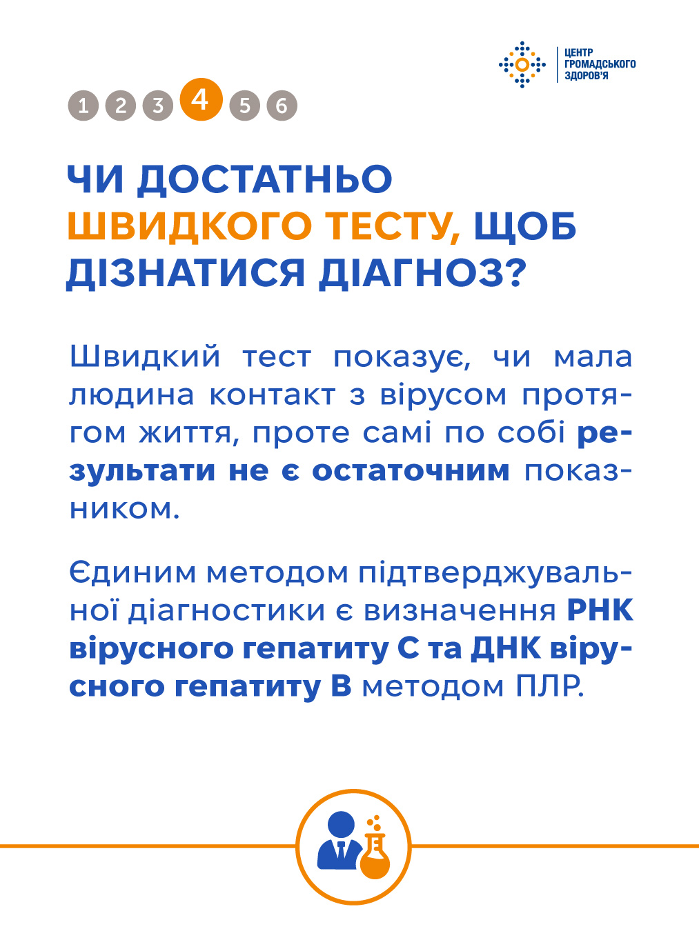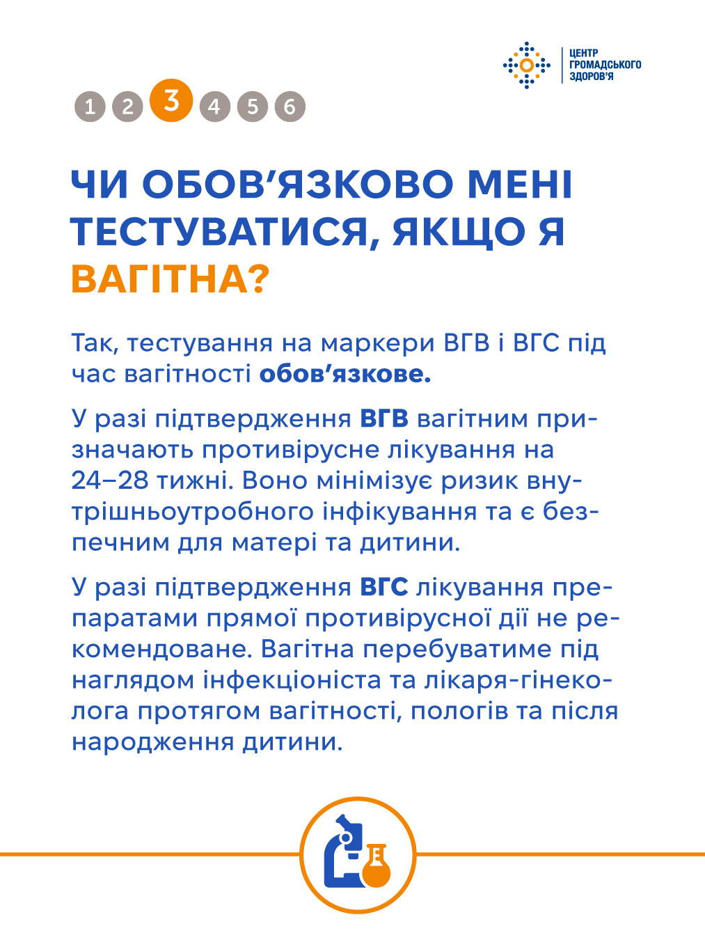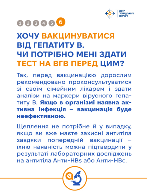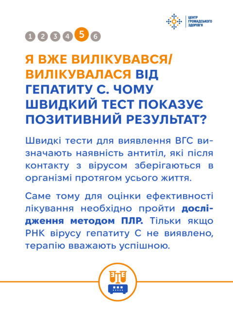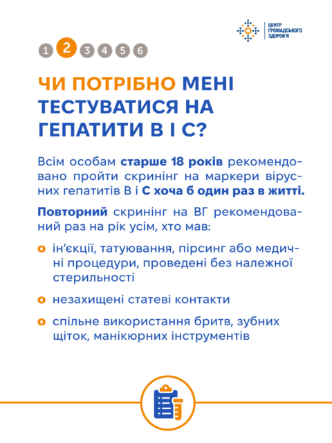 У рамках інформаційної кампанії до Тижня тестування Центр громадського здоров’я підготував цикл корисних публікацій. У цьому матеріалі відповідаємо на поширені питання про тестування на ВГВ і ВГС — дізнавайтесь більше у картках та на сайті ЦГЗ.