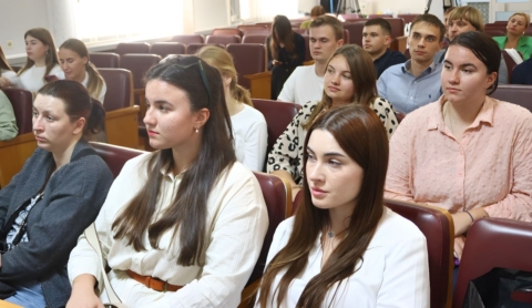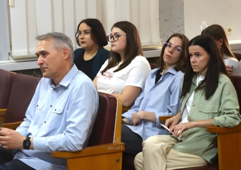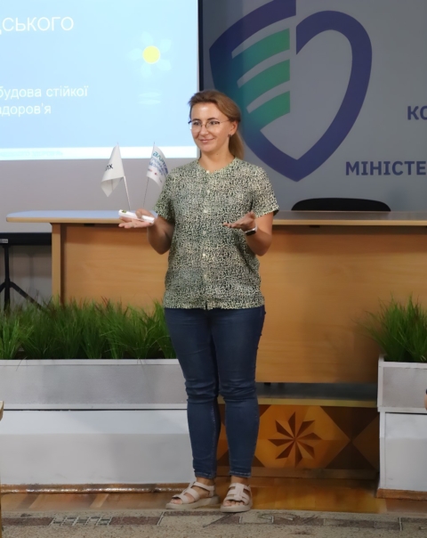 Тетяна Градоблянська, фахівчиня з комунікацій Проєкту USAID Ukraine – USAID Україна Розбудова стійкої системи громадського здоров’я презентувала кампанію «Вартові громадського здоров’я» й запросила студентів долучатися до спільноти фахівців цієї сфери.