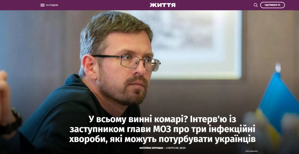 Заступник міністра охорони здоров’я Ігор Кузін в інтерв’ю для видання Українська правда розповів про походження і небезпеку лихоманки Західного Нілу, віспи мавп та COVID-19.