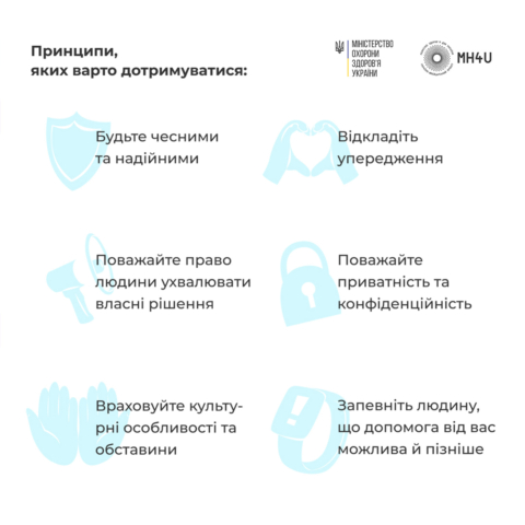 Гортайте карусель та дізнавайтесь, як етично й безпечно підтримати тих, хто переживає кризу.