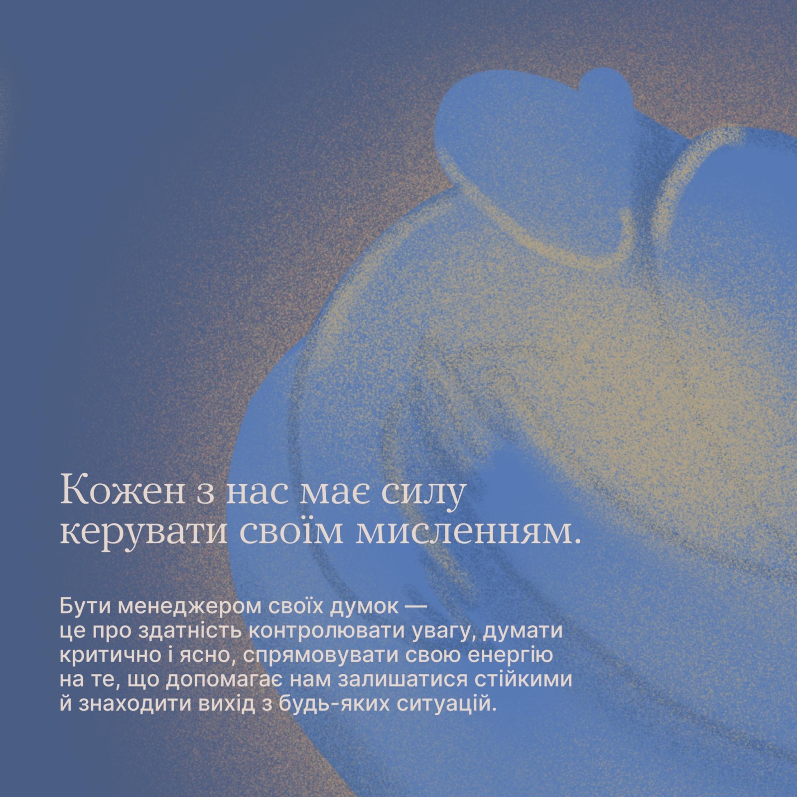 І воно не про токсичний позитив чи уникання труднощів. Обираючи корисні думки, ти вчишся справлятися з викликами, фокусуючись на можливостях, а не на проблемах