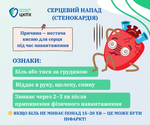 Якщо є хоча б один із цих симптомів – негайно звертайтесь за медичною допомогою. Серцевий напад, який триває понад 15-20 хвилин, може перерости в інфаркт міокарда.