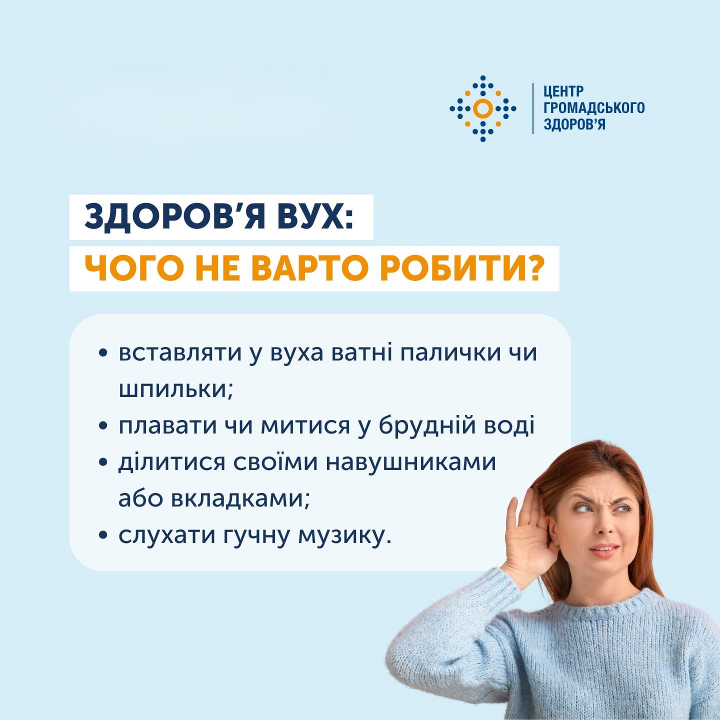 - Вмикайте у навушниках гучність максимум 60% та слухайте музику не довше за годину (так зване правило 60 на 60). Обирайте накладні навушники за можливості, а не навушники-крапельки.