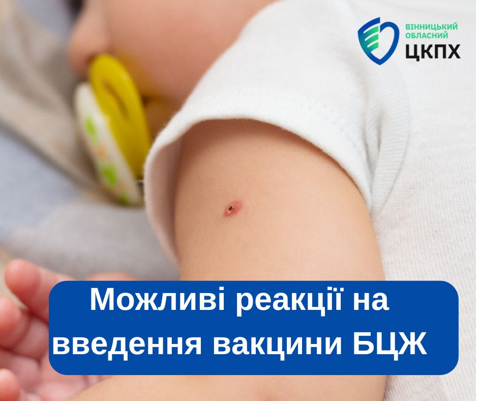 Особливістю вакцини БЦЖ є те, що в більшості вакцинованих спостерігається місцева реакція в місці введення. Через 1-6 місяців на місці введення утворюється папула (пляма, що виступає над поверхнею шкіри) червоного кольору, яка загоюється через декілька тижнів. Через 6-12 тижнів на місці папули може утворитись невеличка мокнуча виразка: в такому випадку накладіть суху пов’язку і не використовуйте пластир. Процес загоєння виразки може зайняти біля трьох місяців, після чого утвориться невеличкий шрам (“рубчик”). Цей процес є нормальним і очікуваним (хоча відсутність “рубчика” також є варіантом норми) і не потребує лікування.