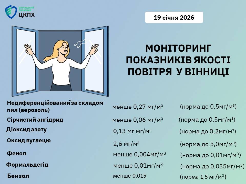 Якість повітря та метеоумови на Вінниччині: результати моніторингу станом на 19 січня