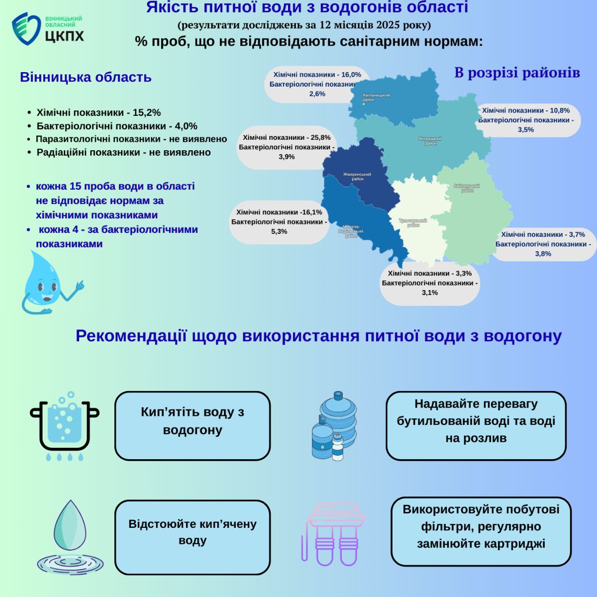 Результати обстежень у 2025 році, а також поради щодо зменшення шкідливого впливу забрудненої води на здоров’я – в інфографіці.