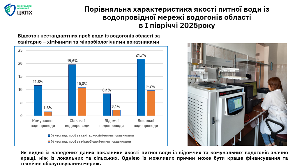 15 жовтня 2025Безпечна питна вода – одна з основних умов збереження здоров’я населення. На жаль, у деяких громадах Вінниччини все ще фіксують випадки невідповідності води санітарним нормам через зношені мережі, забруднення джерел та вплив екологічних факторів.