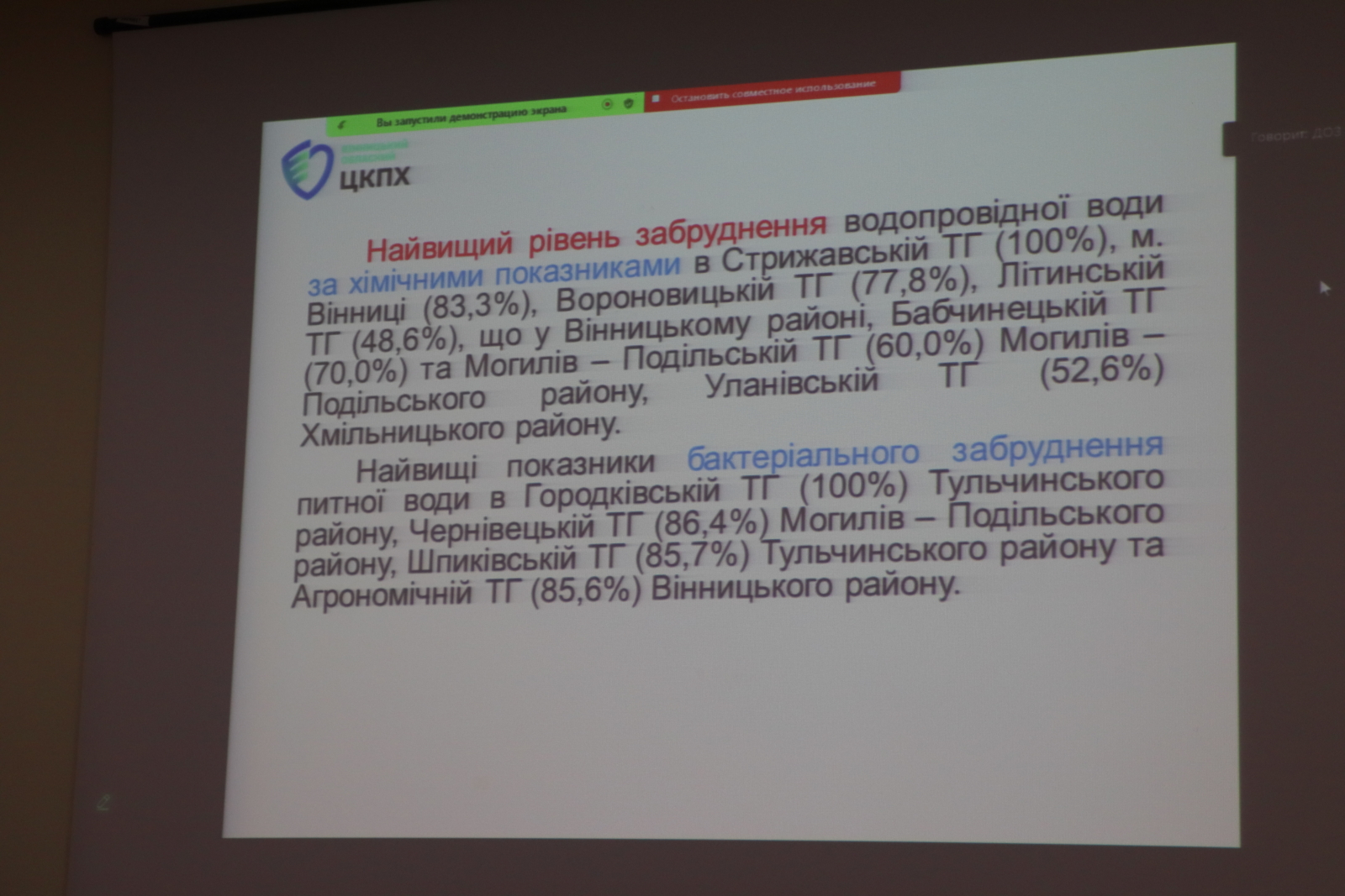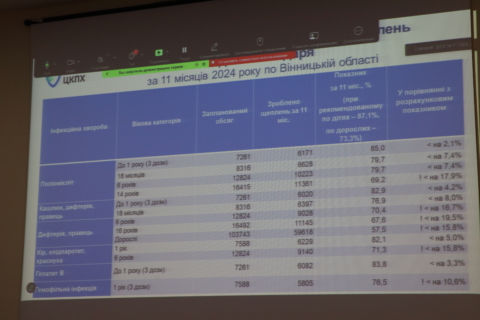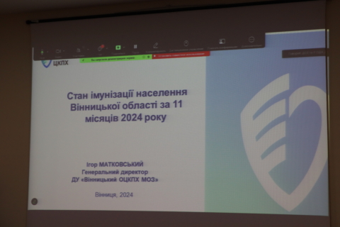 30 грудня 2024Відбулося засідання координаційної ради з питань громадського здоров’я. Генеральний директор Вінницького ОЦКПХ, головний державний санітарний лікар області Ігор Матковський провів дві презентації «Аналіз стану водопостачання та якості води, що споживається населенням» і «Стан імунізації населення Вінницької області за 11 місяців 2024 року».