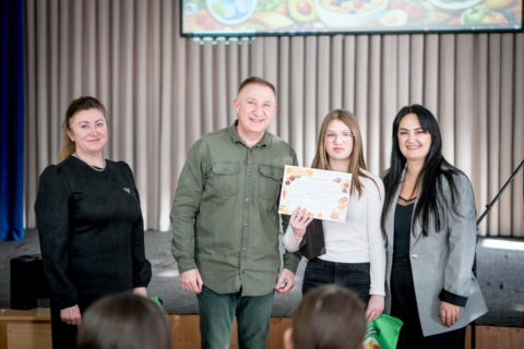 Підсумком ініціативи стало урочисте нагородження учнів, які проявили себе як лідери проєкту «П’ять кроків до здорового харчування». У заході також взяли участь школярі 7–8 класів, які долучилися до події з метою обміну досвідом. Саме така комунікація між однолітками допомагає доступно та переконливо доносити важливу інформацію про здорове харчування і формувати свідоме ставлення до власного здоров’я.