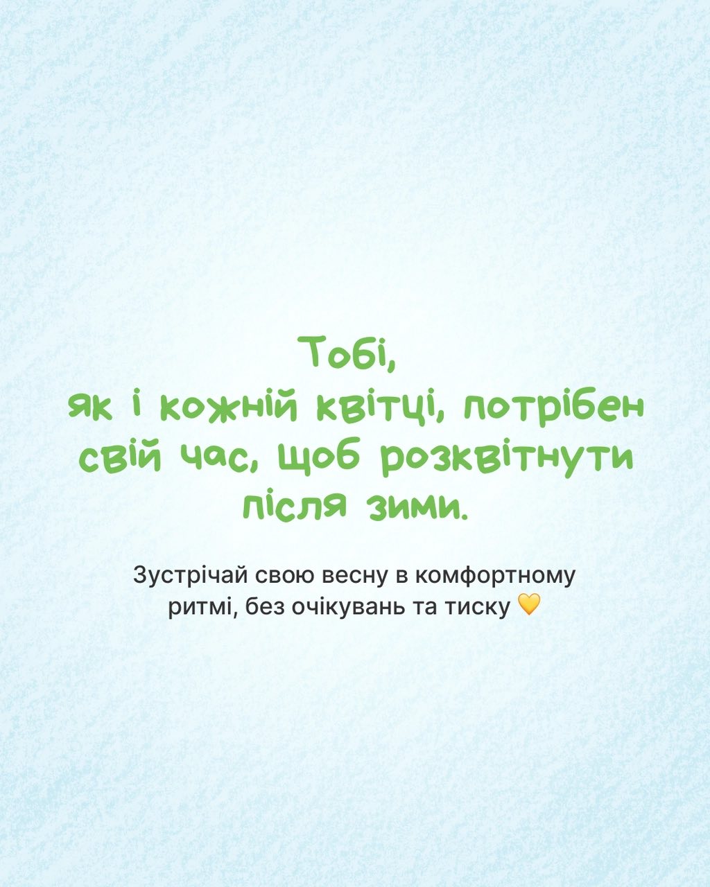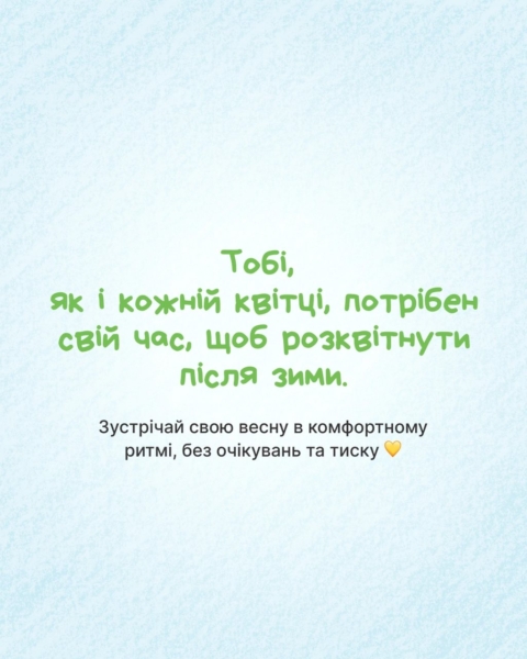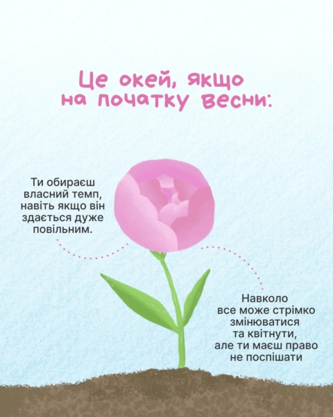 Якщо зараз відчуваєш втому чи просто хочеш проводити більше часу вдома наодинці із собою, ти не «пропускаєш» весну, а дбаєш про себе.