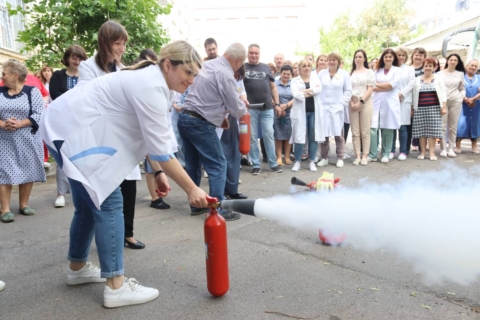 Саме тому, сьогодні, для співробітників ДУ «Вінницький обласний центр контролю та профілактики хвороб МОЗ України» проведене позапланове практичне заняття «Пожежна безпека в Центрі та використання вогнегасників».
