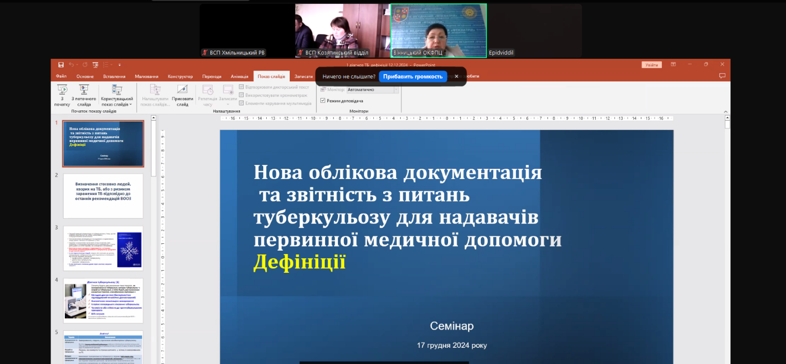 Зі слухачами онлайн-тренінгу спілкувалися генеральний директор ОЦКПХ Ігор Матковський, завідувач відділу епіднагляду та профілактики інфекційних захворювань Володимир Хитрук і завідувачка інформаційно-аналітичного відділу медичної статистики Вінницького обласного клінічного фтизіопульмонологічного центру Ніна Гончар.